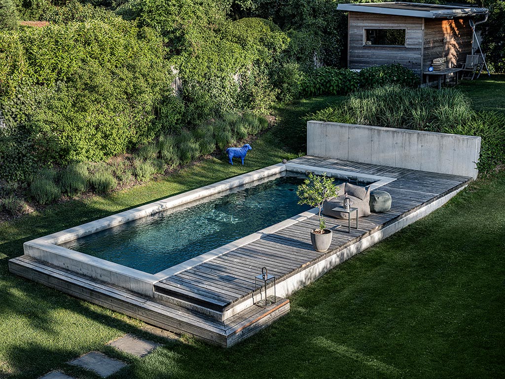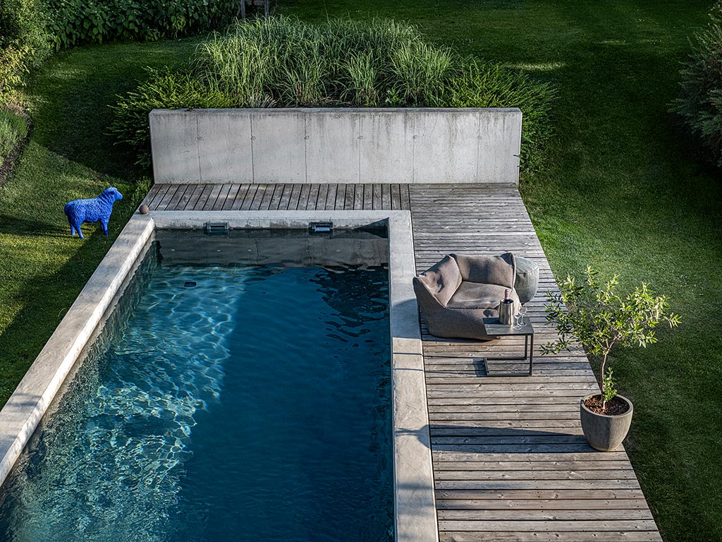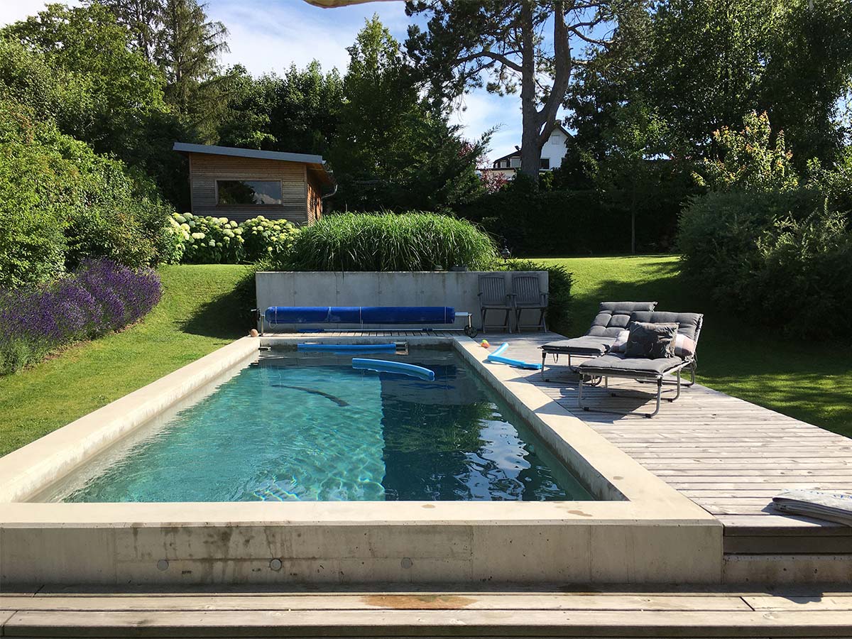 Der Gestaltungsspielraum kennt dank Beton somit kaum Limits: Farbe, Form, Tiefe, Stufen, Liegeflächen - der Fantasie sind wenige Grenzen gesetzt. Sowohl mit Überlaufkante oder als Skimmerbecken, das Ergebnis erfüllt stets höchste ästhetische und funktionale Ansprüche!