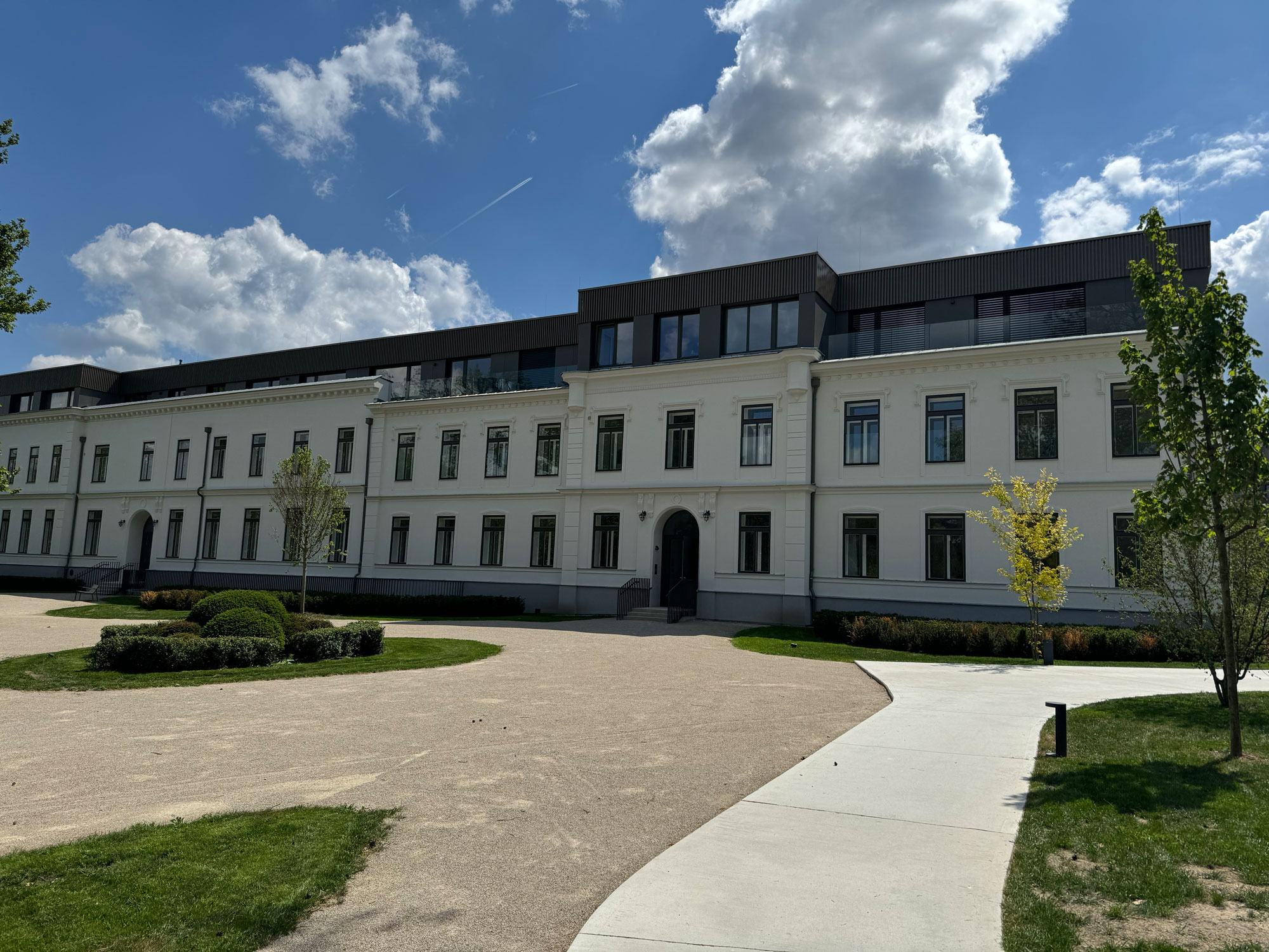 Die historische Nordfassade dieses alten Gebäudes wurde 2022/23 umfassend saniert und zum Gesicht des Neubaus "Floriette".
